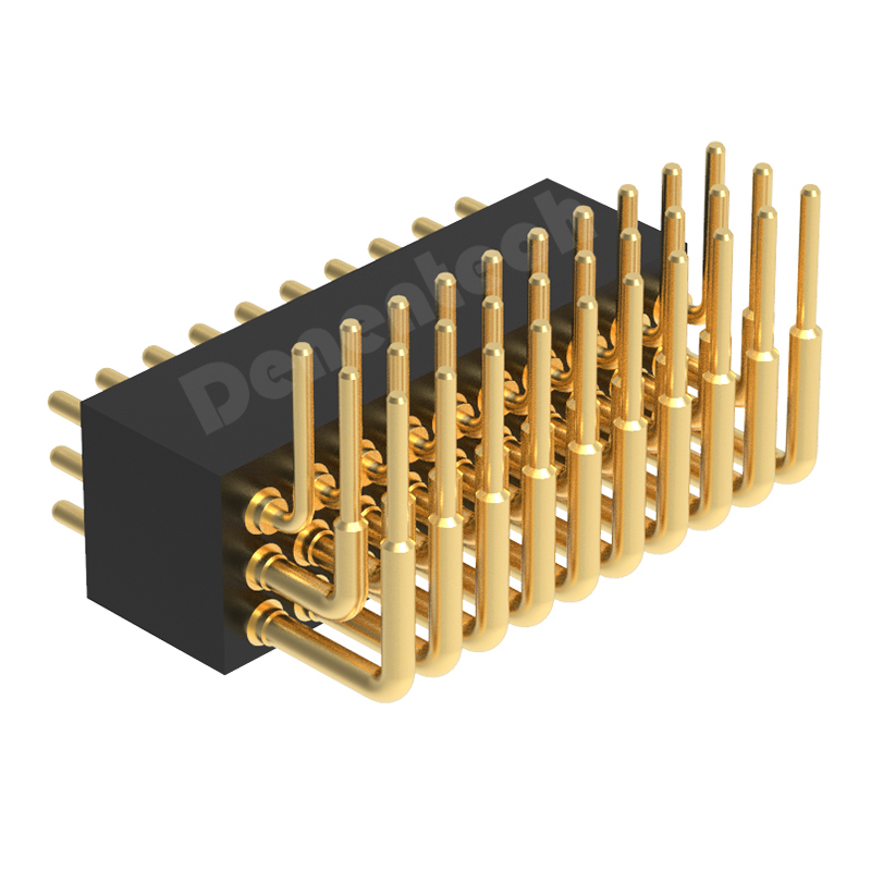 Denentech德能电子1.27MM弹簧针塑高H2.0三排母座180度直插平面接触弹簧顶针厂家