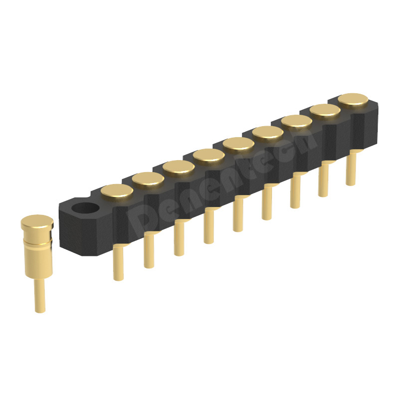 Denentech可定制2.00MM弹簧针H1.27单排母座90度凹面不帯柱