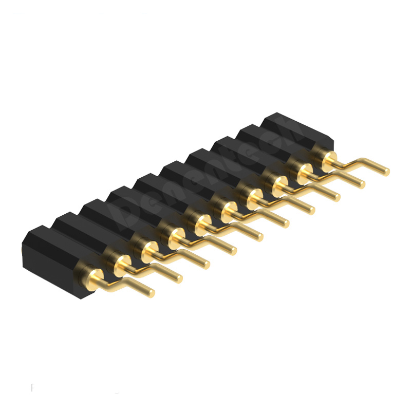 Denentech可定制2.00MM弹簧针H1.27单排母座90度凹面不帯柱