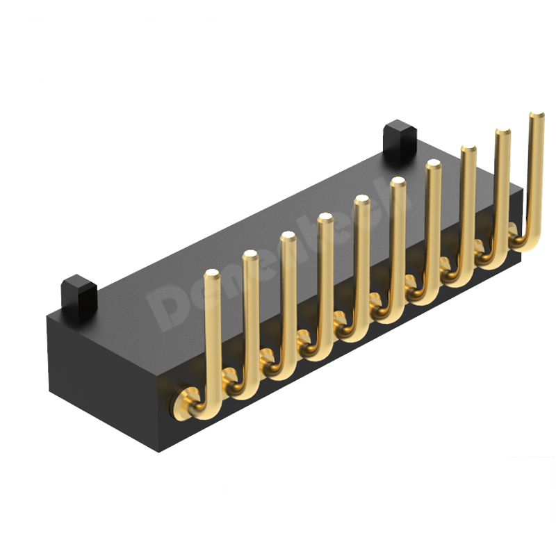 Denentech 热销1.27MM弹簧针H2.0单排公座90度折弯pogopin公母座顶针