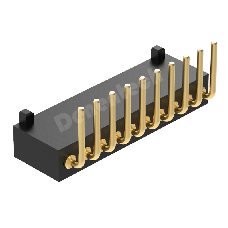 Denentech 工厂OEM 1.27MM H2.0双排母座90度凹面弯脚高寿命pogopin弹簧针