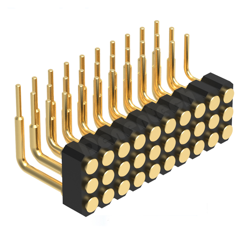 Denentech高质量2.00MM弹簧针H4.0双排母座90度平面帯柱POGO PIN